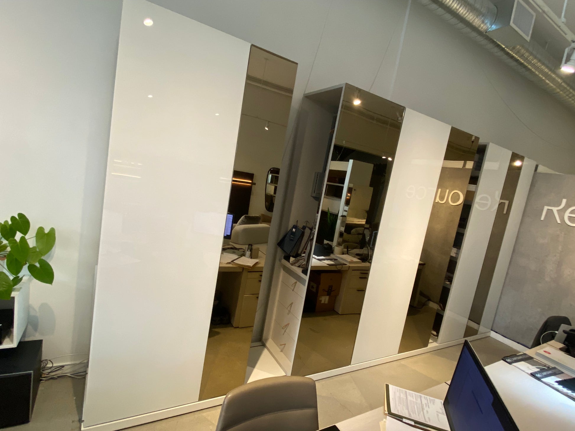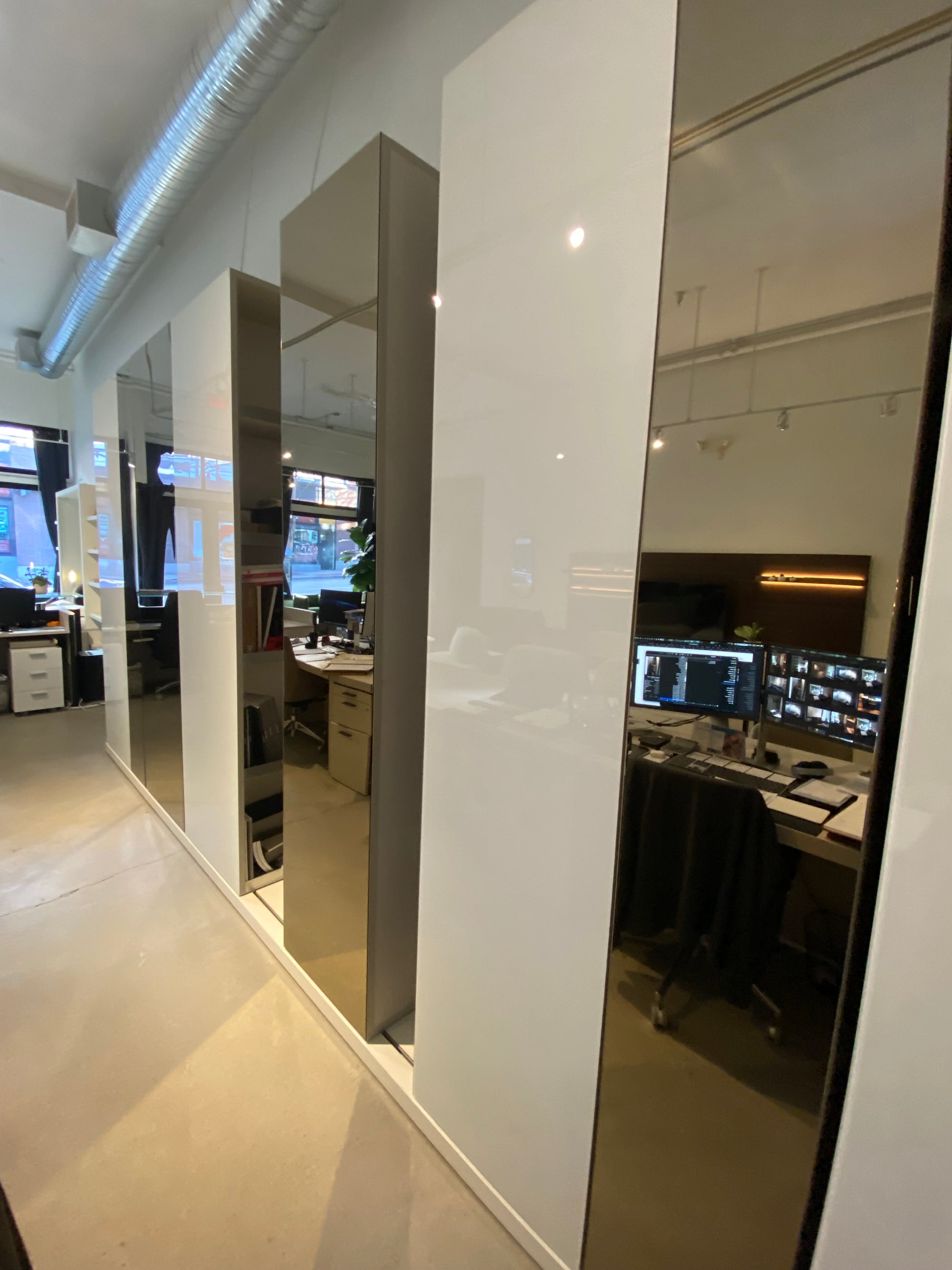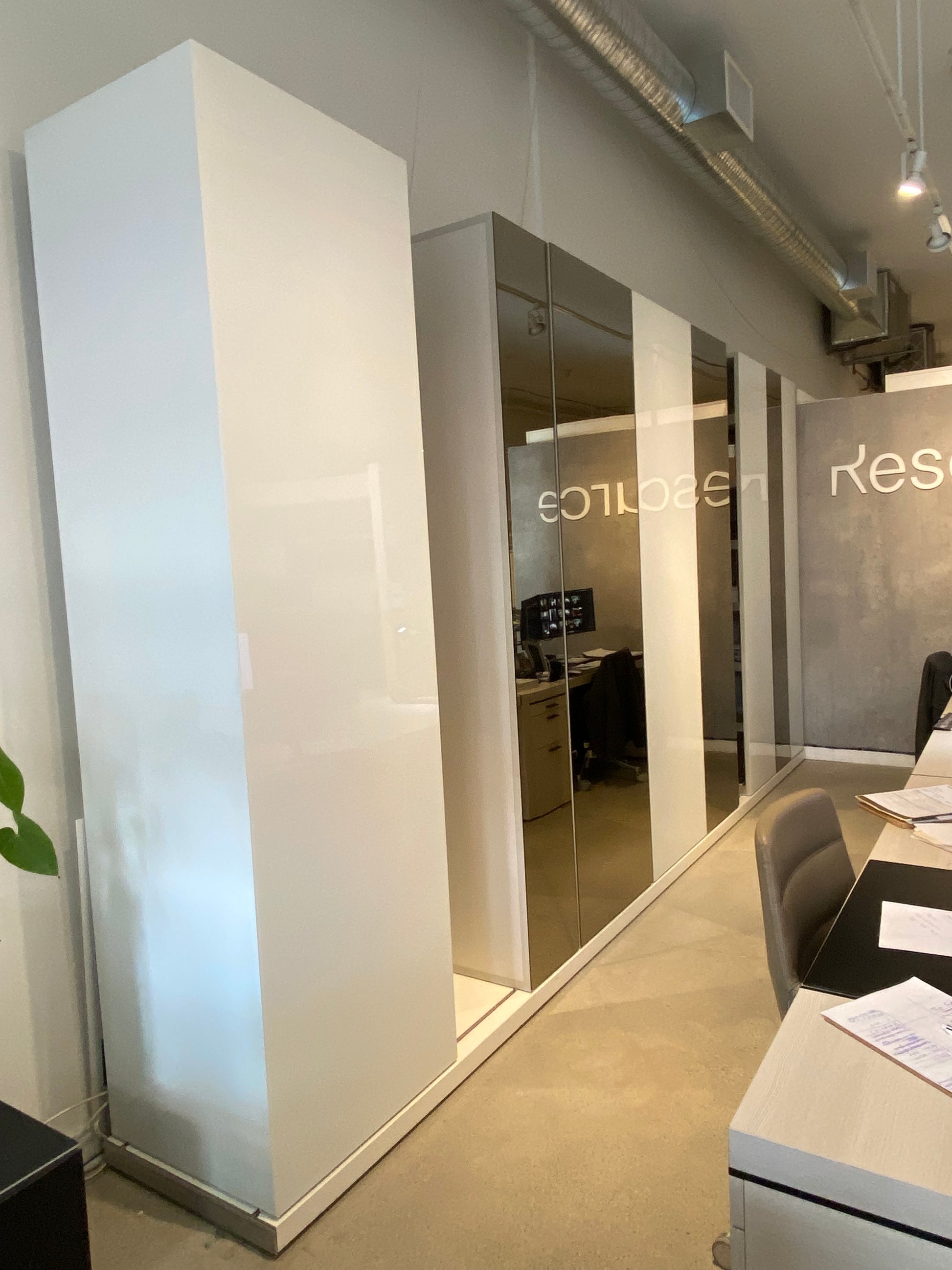 Finishes: White Gloss Glass and Bronze Mirror. For more information please contact the Vancouver showroom.