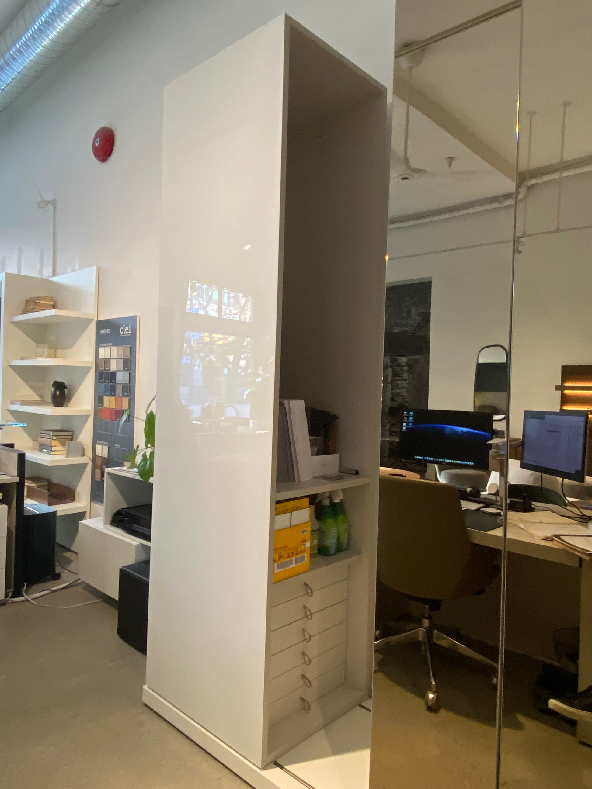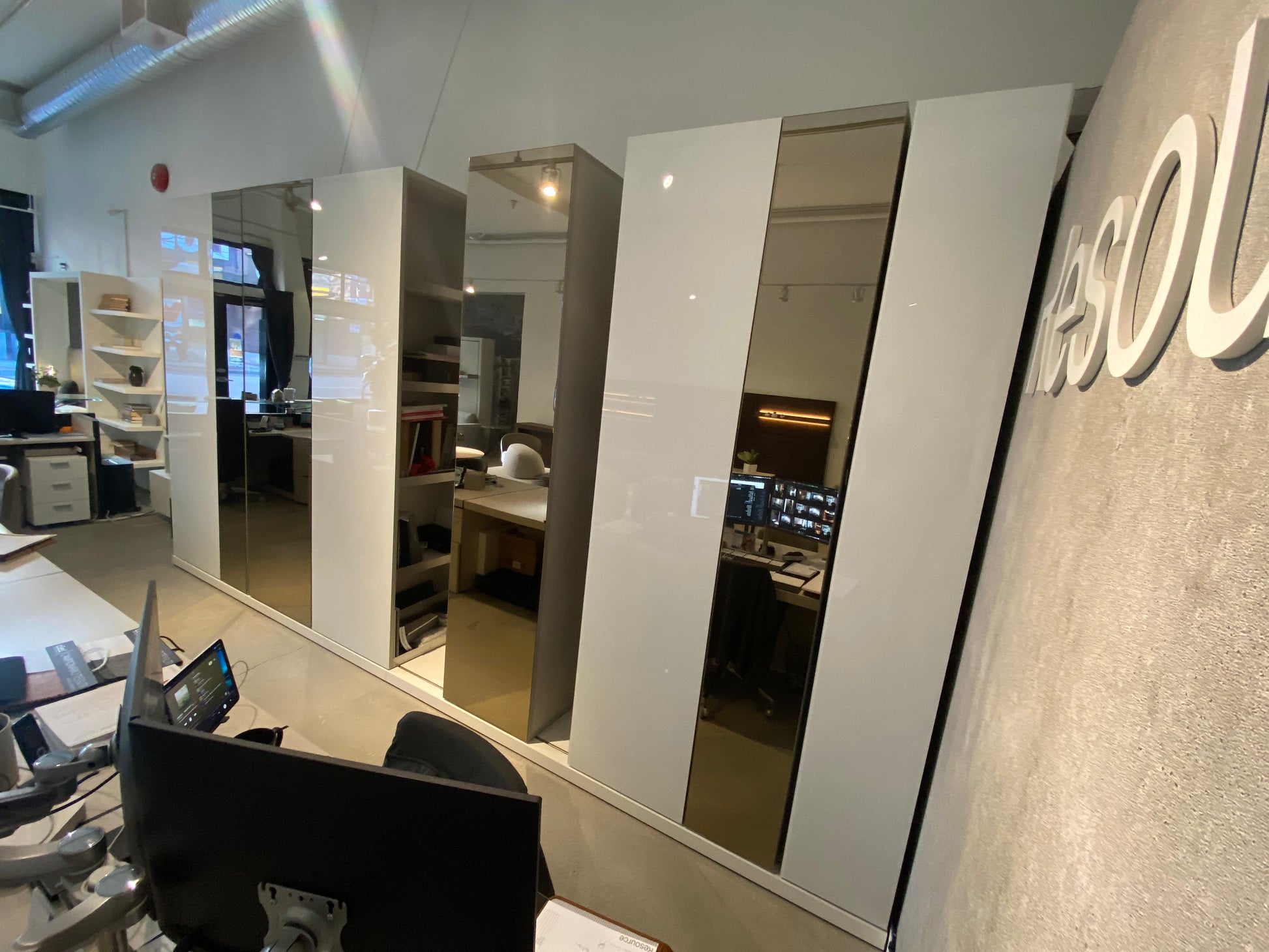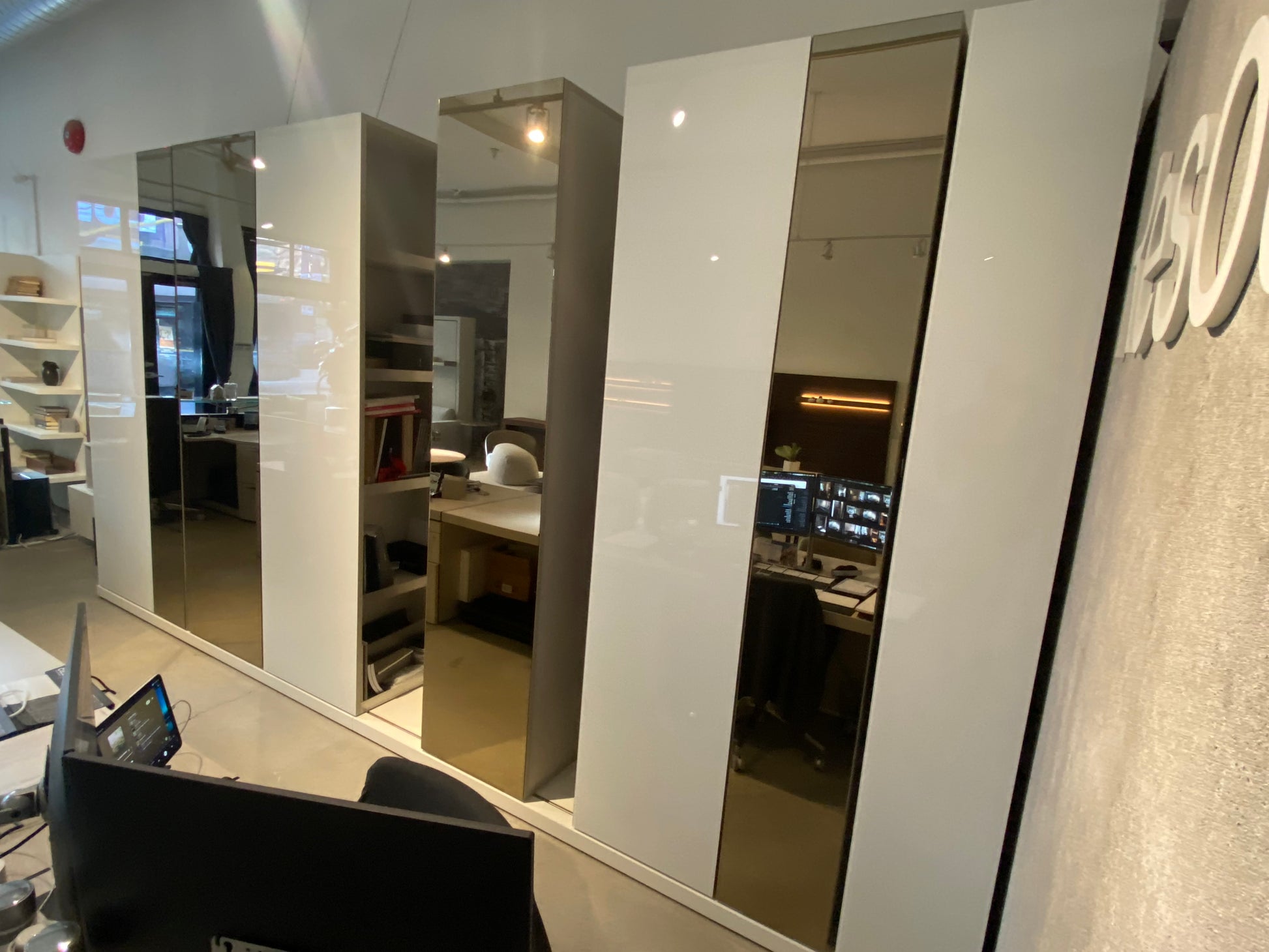 Finishes: White Gloss Glass and Bronze Mirror. For more information please contact the Vancouver showroom.