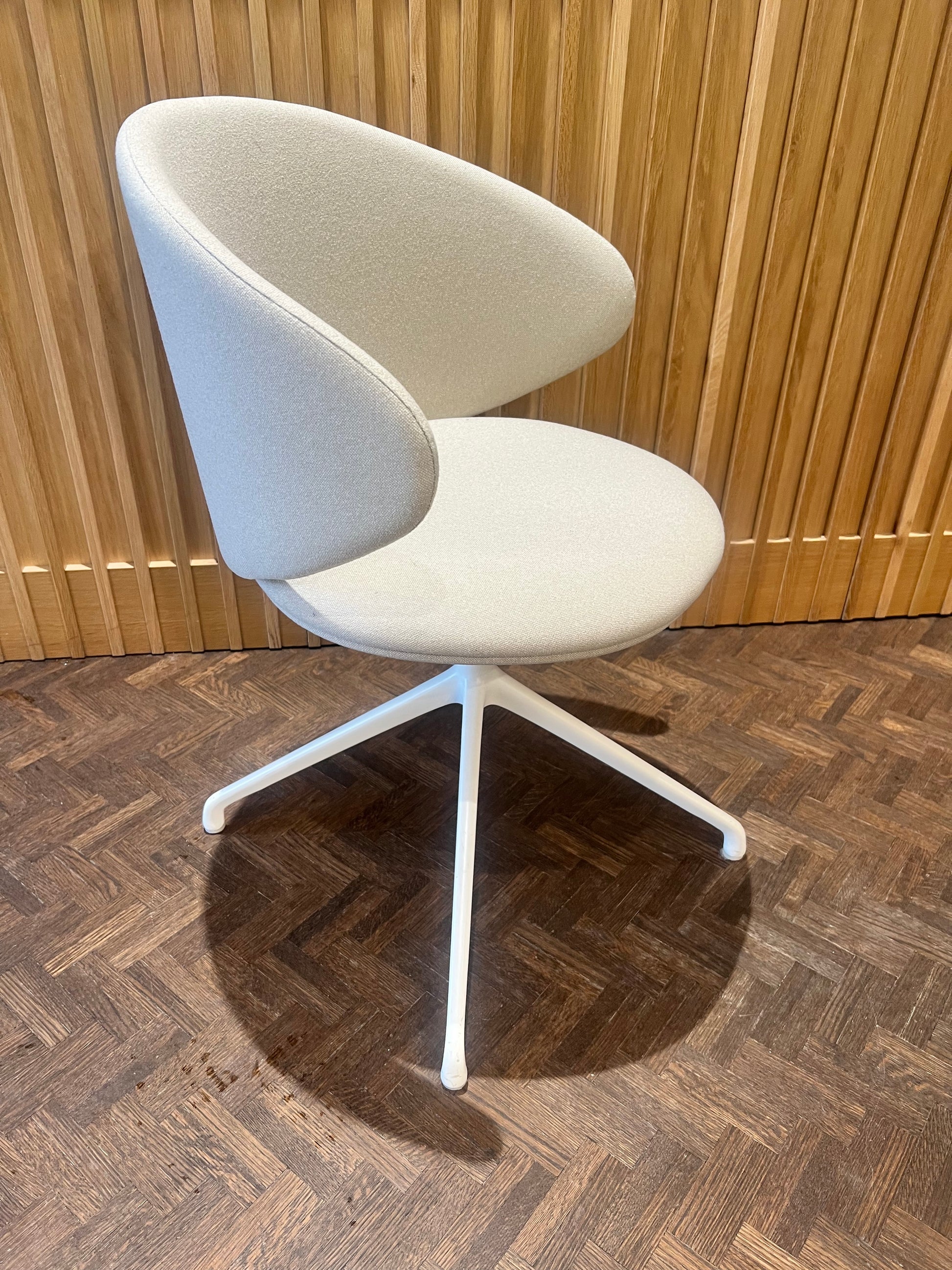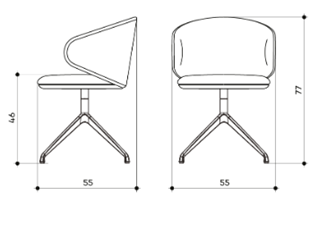 Swivel armchair with 4-rays base made of polished or painted aluminum. Comes with the option of beech plywood seat and backrest with flame-retardant polyurethane foam, upholstered. Or fully upholstered in various finishes to choose from.