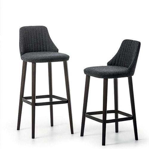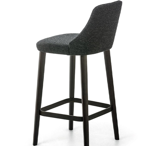 Dive into the realm of customization with options for the stool's shell: a fully upholstered version or a wood-backed alternative, both offering a canvas for your choice of Italian fabrics and leathers. The stool stands elegantly on legs crafted from beechwood, embellished with a metal footrest to create a harmonious blend of materials that accentuates its charm.