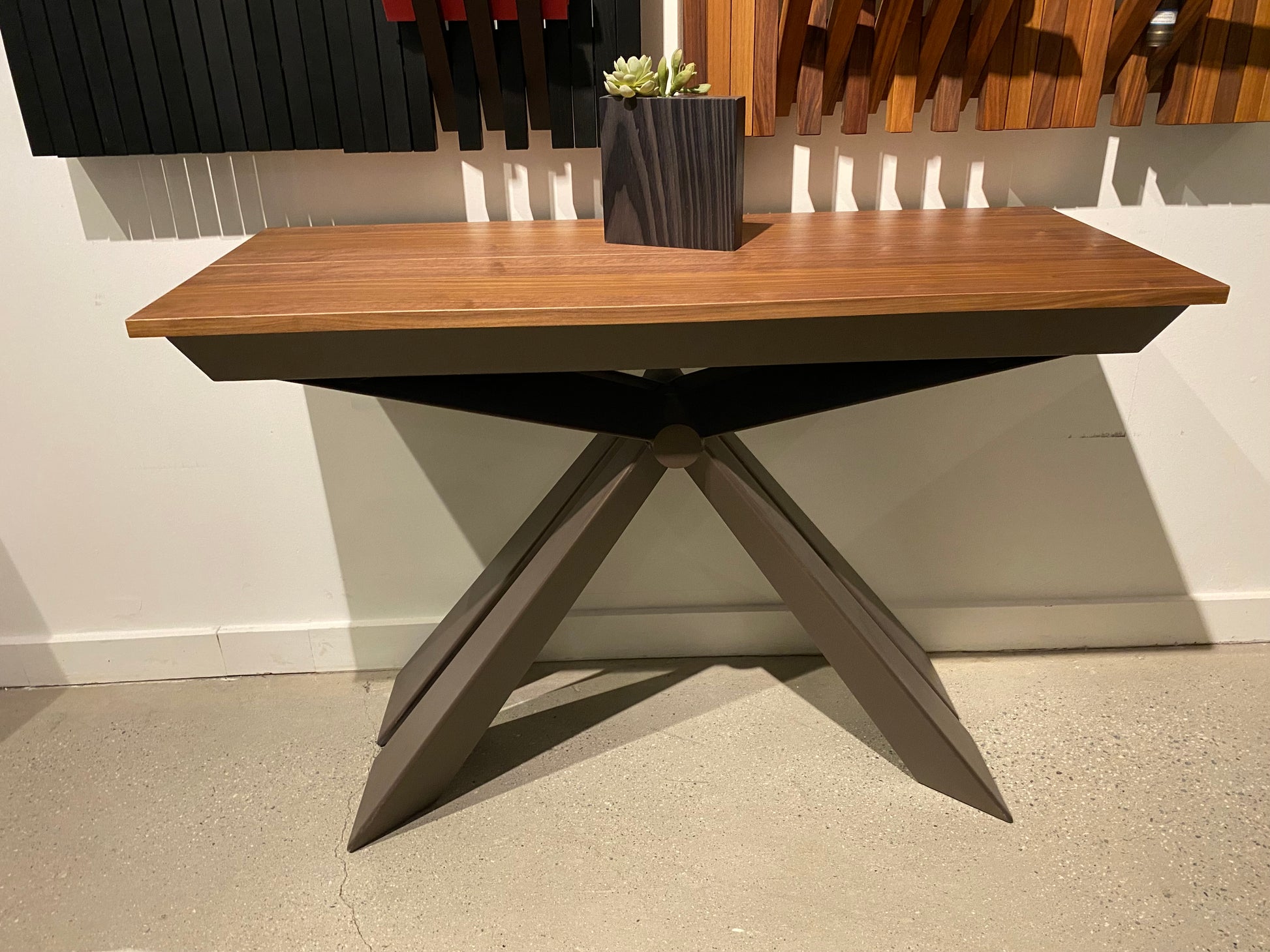 Introducing Genesi, a space-saving console table designed for modern living. This console table effortlessly transforms into a spacious dining table, expanding to accommodate up to 8 people. When fully extended, the table top is supported by a discreet central leg to offer stability.